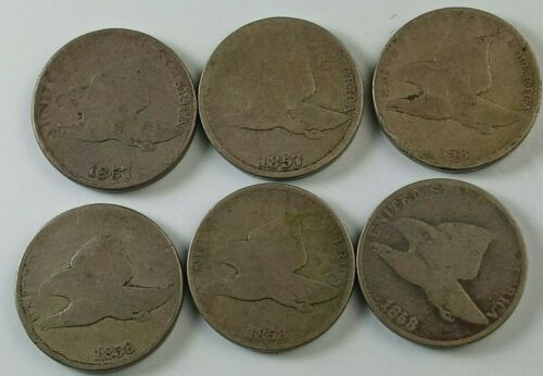 I found 6 Flying Eagle Cents 2-1857 & 4-1858 All Are Solid AG's to Good - Nice lot on eBay with sale price US$17.0 CLICK HERE!